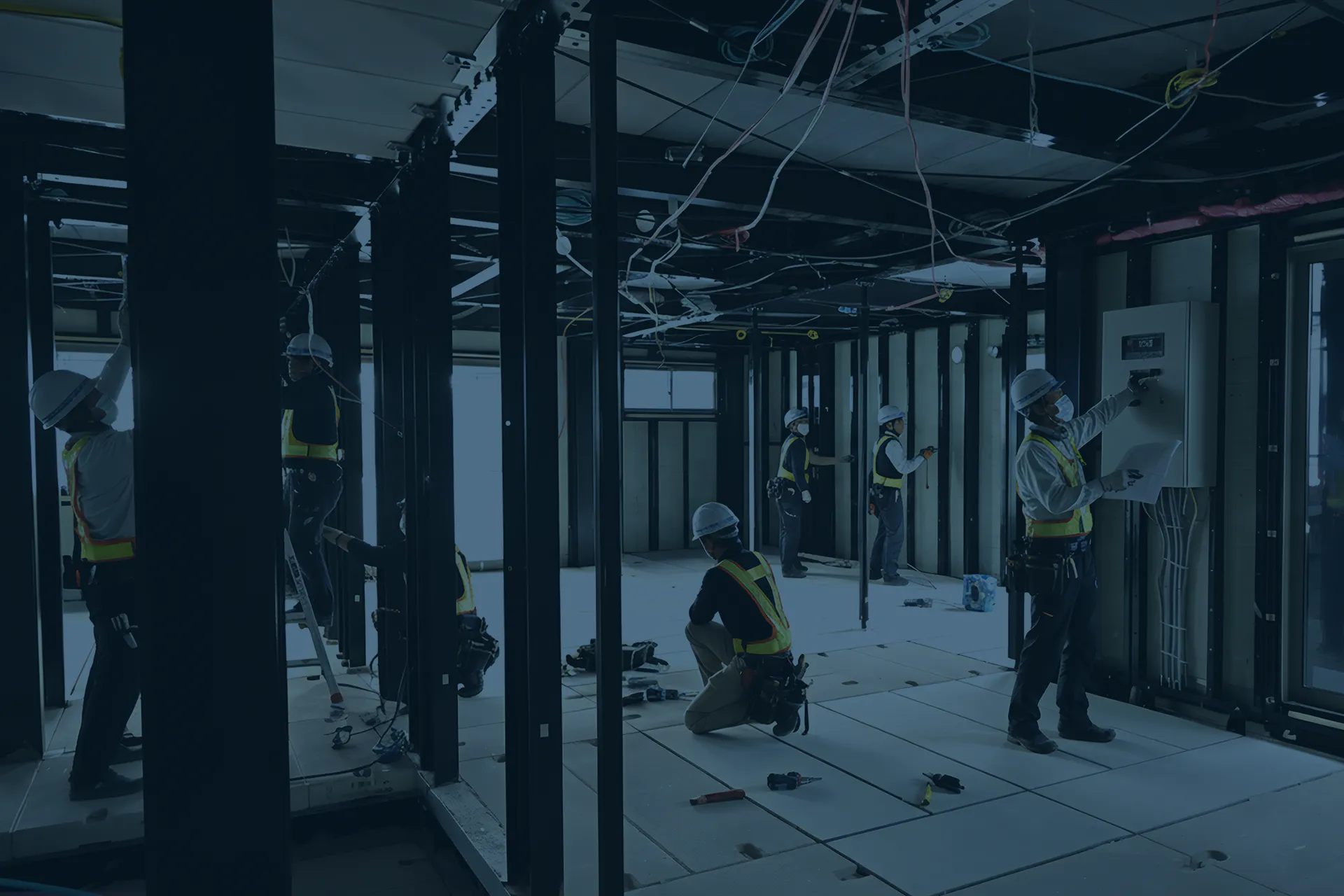 配線の接続や機器の据え付けなど、計画に沿って施工を進めます。先輩の指示を受けながら、確認や作業を丁寧に行います。
